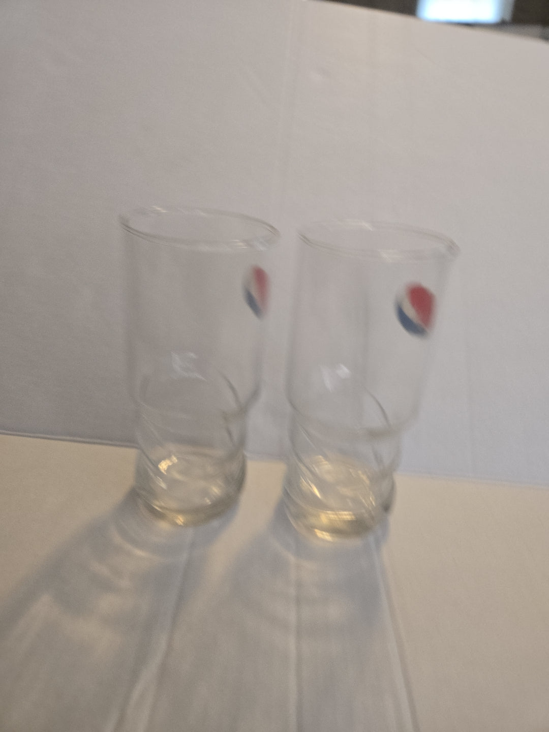 Vintage Pepsi Set of 2 Swirl Base 16 Oz Glasses. Each glass has some.kimd of cosmetic damage but has never been used. Please see attached photos.